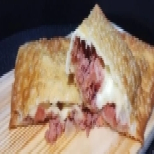 Pastel recheado com deliciosa calabresa, presunto e queijo derretido, envolto em uma massa douradinha e irresistível! ... Ver completo